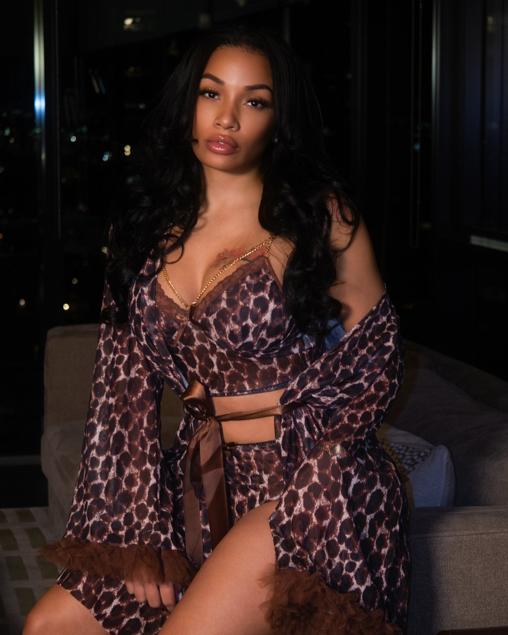 Designed as luxury loungewear with a lingerie feel. Perfect for slow nights in, styled comfort, and feeling confident while staying home. True to size with intentional stretch